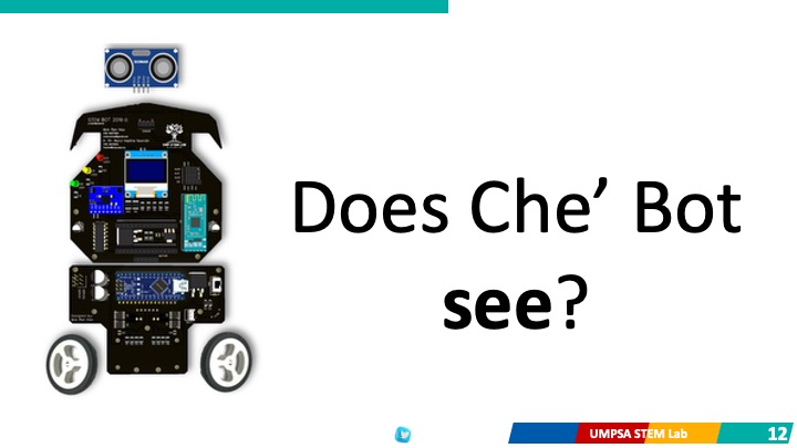 ‘See’ing in this context is the ability of the robot to differentiate black and white surface. It is then, when the robot can identify lines (black line on white surface – or vice versa).